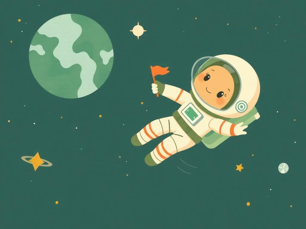 Una noche, Luna soñó que un cohete dorado la llevaba a visitar los planetas.